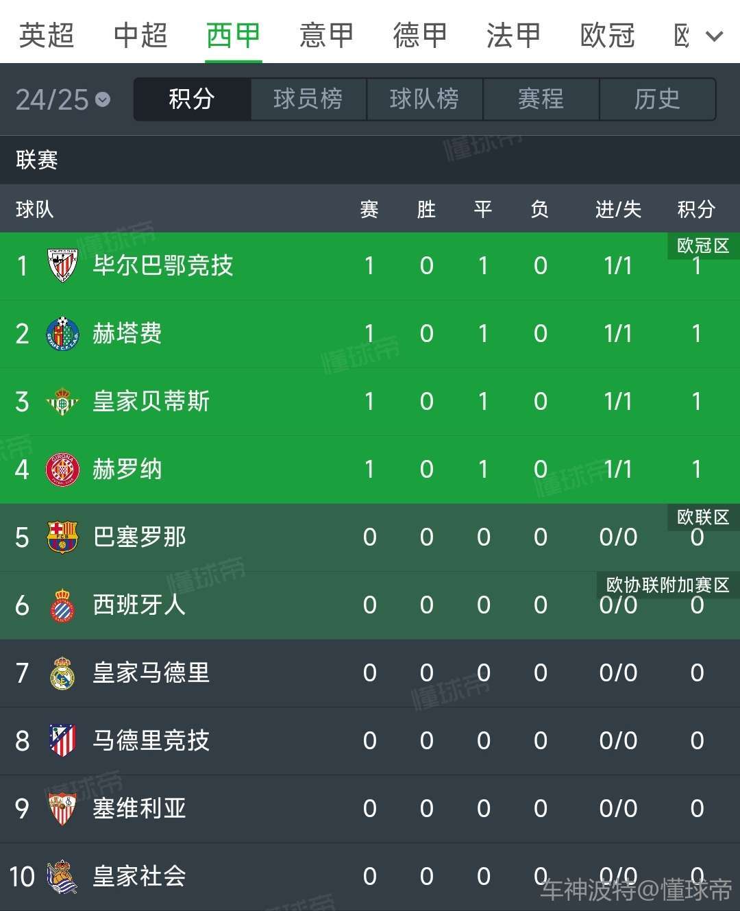 精彩,今晚西甲两场榜首之战,四队同分同净胜球,并列第一不分高下