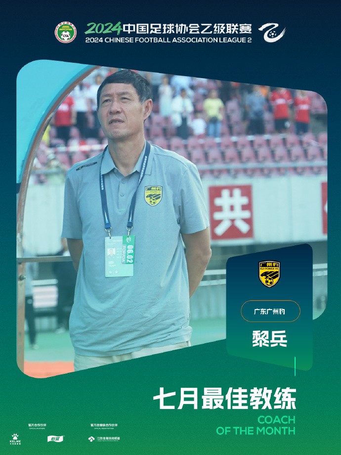 北京时间8月22日,中乙官方宣布,广东广州豹主帅黎兵当选联赛7月最佳教练,这是他本赛季第3次获得月度最佳教练奖项。
