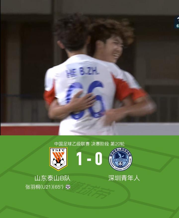 北京时间8月24日19:00,中乙决赛阶段,山东泰山B队主场迎战深圳青年人。上半场比赛,温永骏造险,陈梓荣扑单刀;下半场,张羽桐打入全场比赛唯一进球。最终山东泰山B队1-0击败深圳青年人。