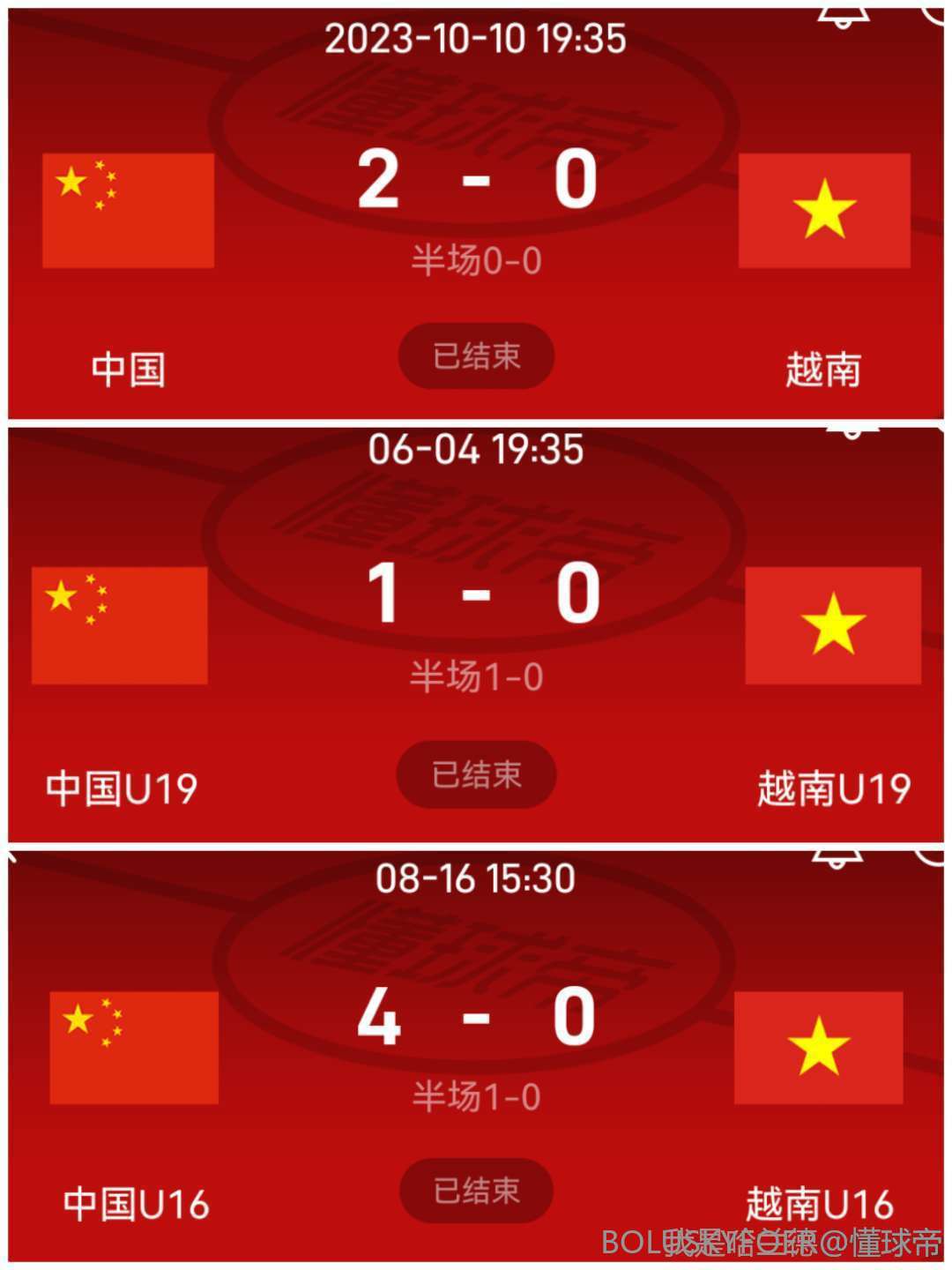 国家队,u21,u19,u16完成对越南的4连杀,事实证明越南足球的巅峰也就是主场赢一次状态不佳的国足,其他时候根本不配给我们提鞋