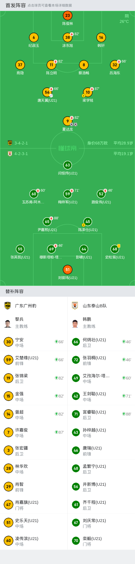 北京时间9月22日,中国足球乙级联赛决赛阶段第24轮,广东广州豹主场迎战山东泰山B队。比赛中,广东广州豹的夏达龙推射+中场吊射神仙球完成梅开二度。最终,广东广州豹以2-0战胜山东泰山B队,夺得本赛季中乙冠军。