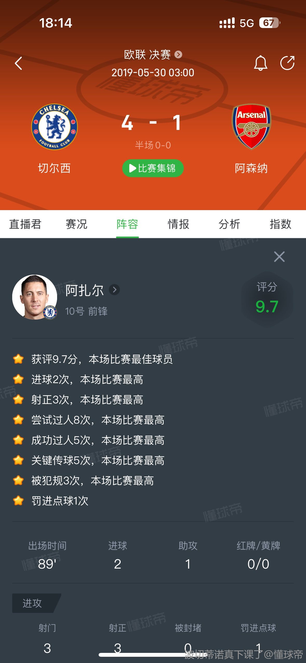 阿扎尔多少次梨花香是踢阿森纳放的