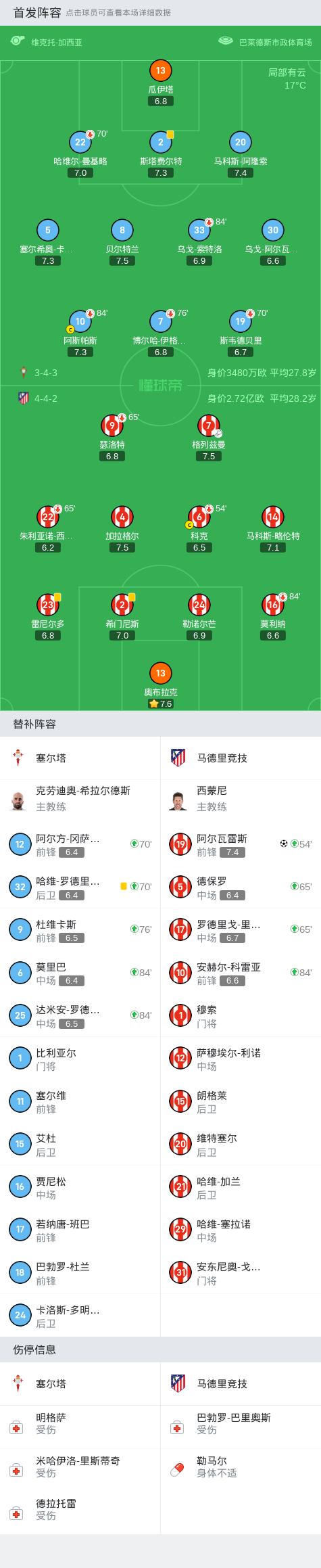 我感觉西蒙尼把以前的防守反击战术改成了防守反击思维:整个上半场射门次数寥寥无几,还有几个防守还有奥布拉克那个射门扑出!下半场下部塞尔塔有个小禁区打飞一个,这是命比较硬。
