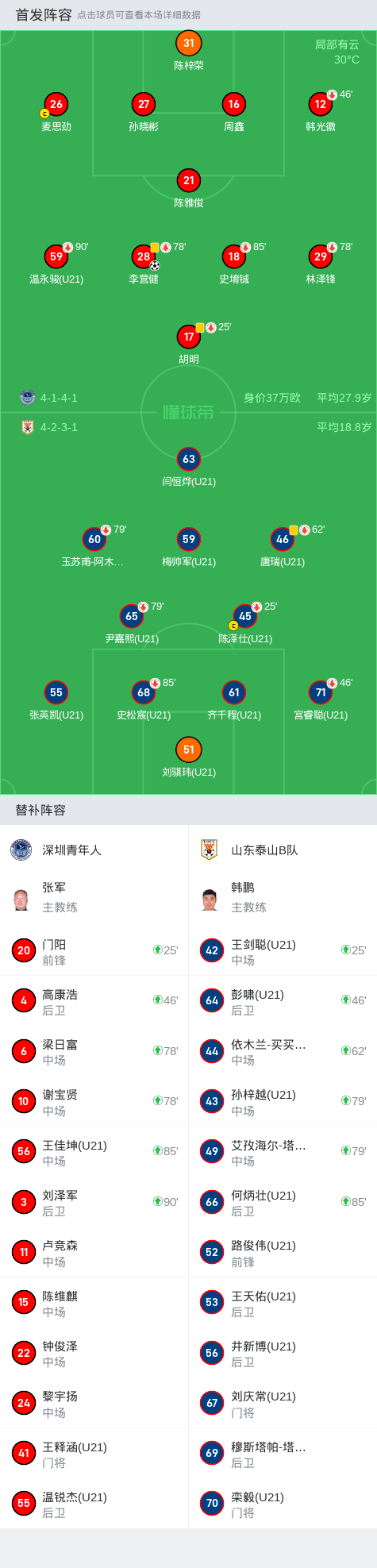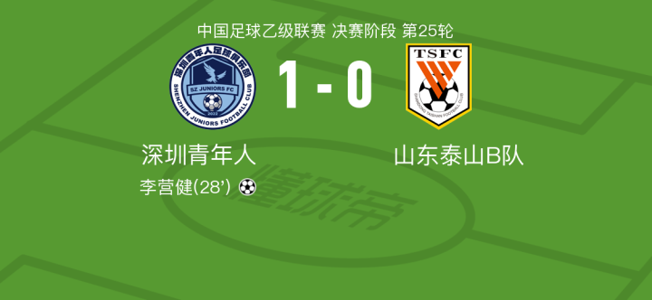 深圳青年人1-0山东泰山B队,李营健一锤定音