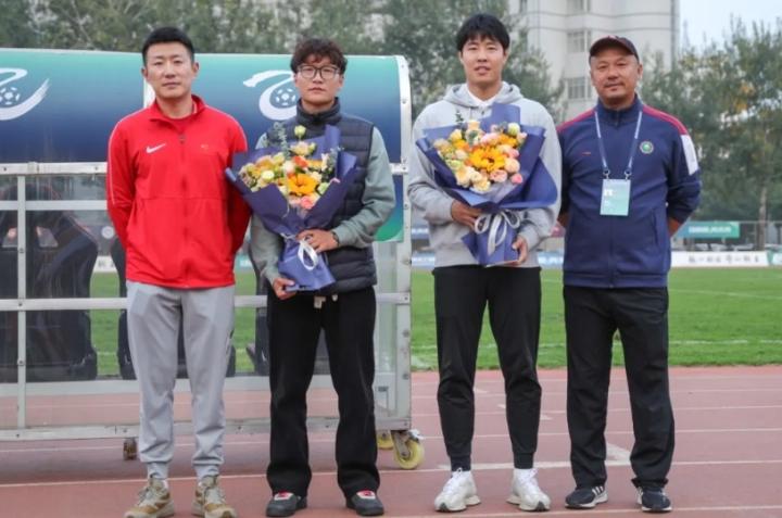俱乐部总经理、北京理工大学体育部主任为法学院2023级硕士研究生陈季冬颁发联赛100场纪念球衣。球队为经济学院2022级硕士毕业生郭梦源、郭梦杰、李翔宇举行了退役仪式,球队主教练、体育部副教授于飞,为退役球员赠送鲜花。