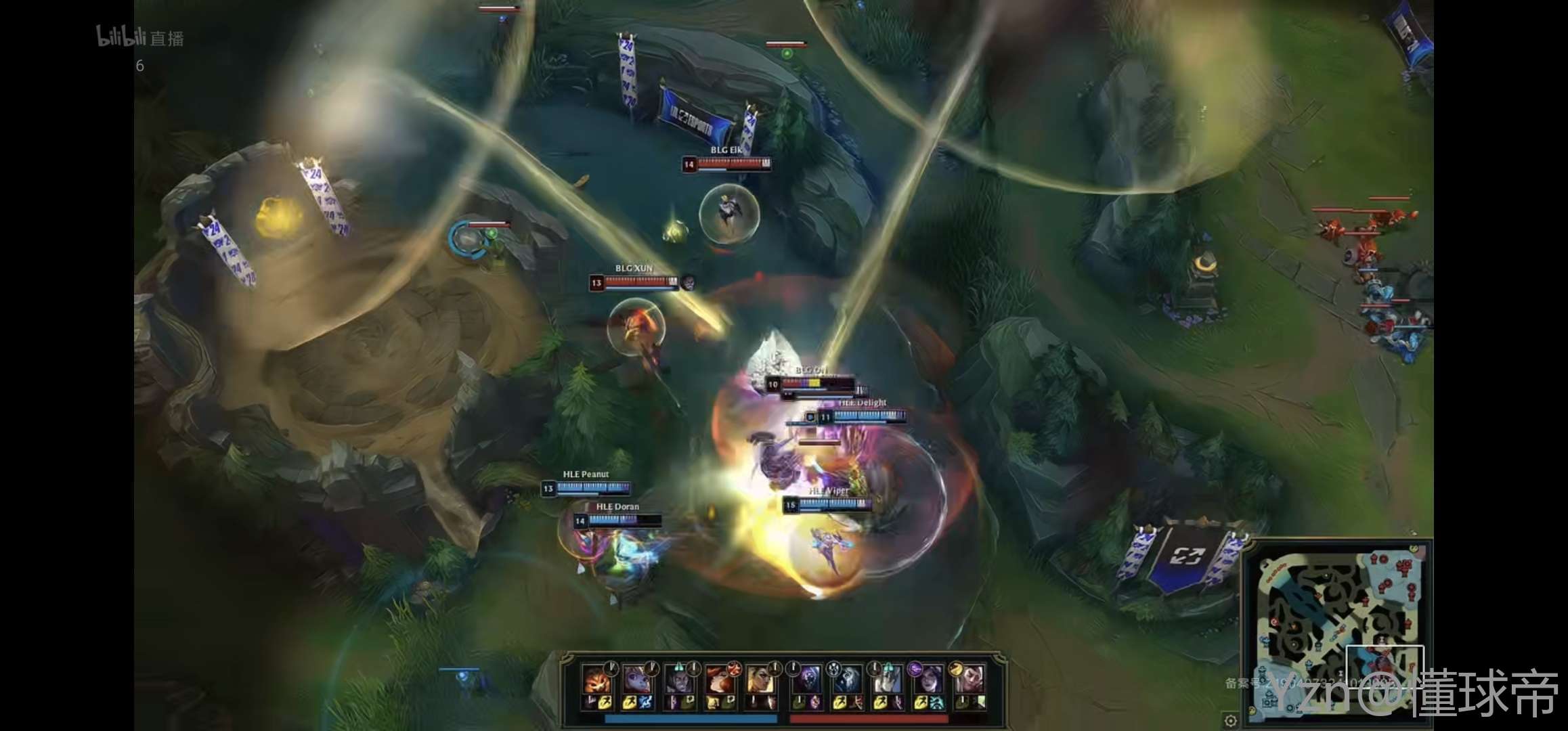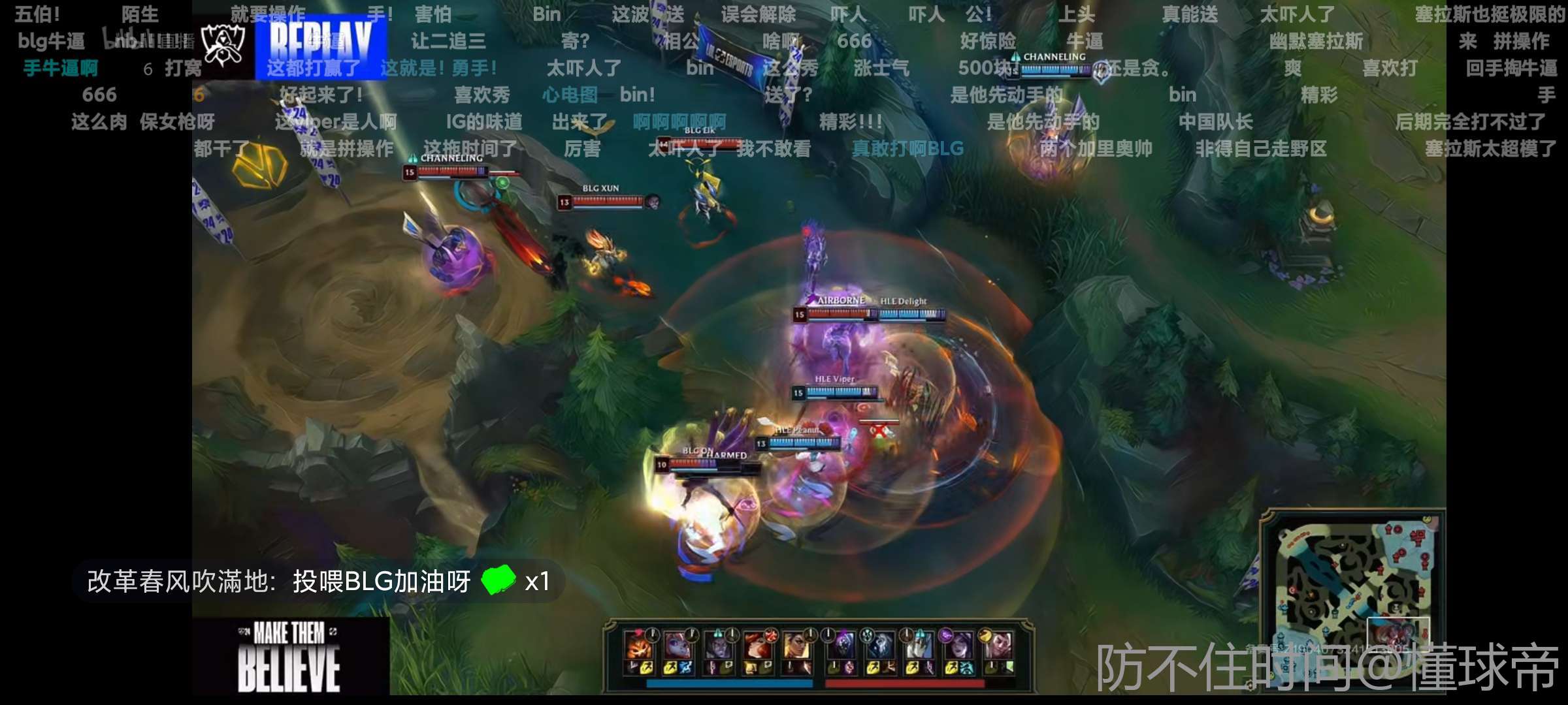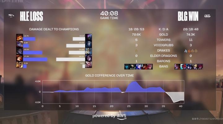 第39分钟,HLE三路被迫,BLG带着三路兵线直接推掉基地,BLG晋级半决赛,20-18。