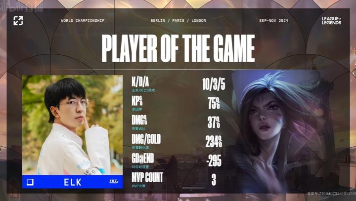 第22分钟,HLE抢下小龙,Elk飞身进场切掉Viper,BLG打出1换4,5-3。