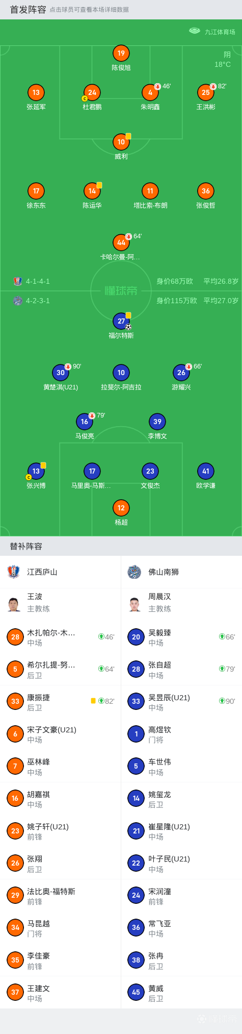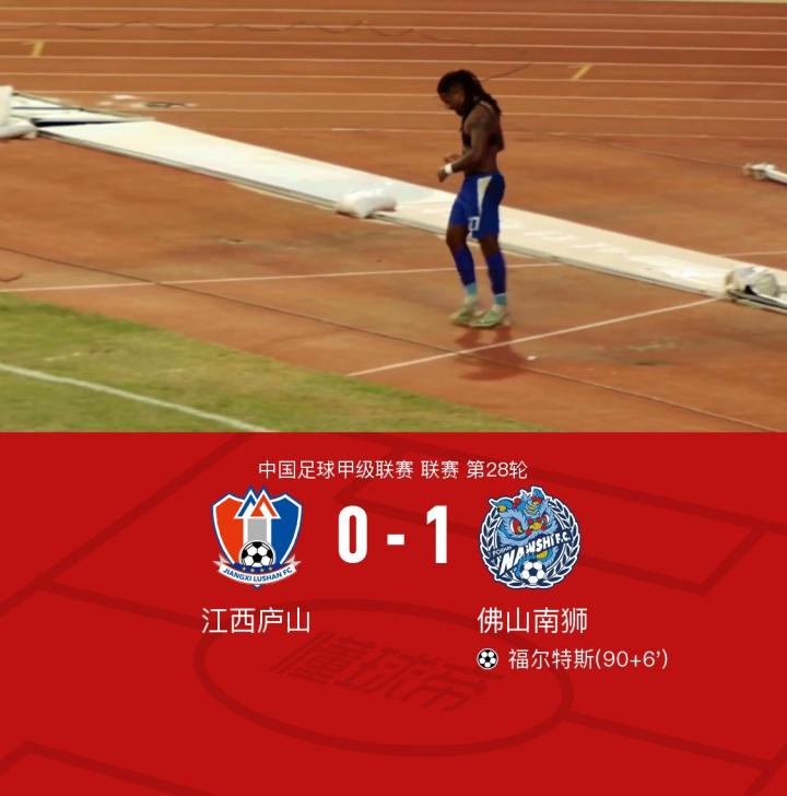 在中国足球甲级联赛第28轮的较量中,江西庐山坐镇主场迎战佛山南狮。比赛补时阶段,福尔特斯任意球直接得分。最终,佛山南狮客场1比0送江西庐山提前两轮降级。