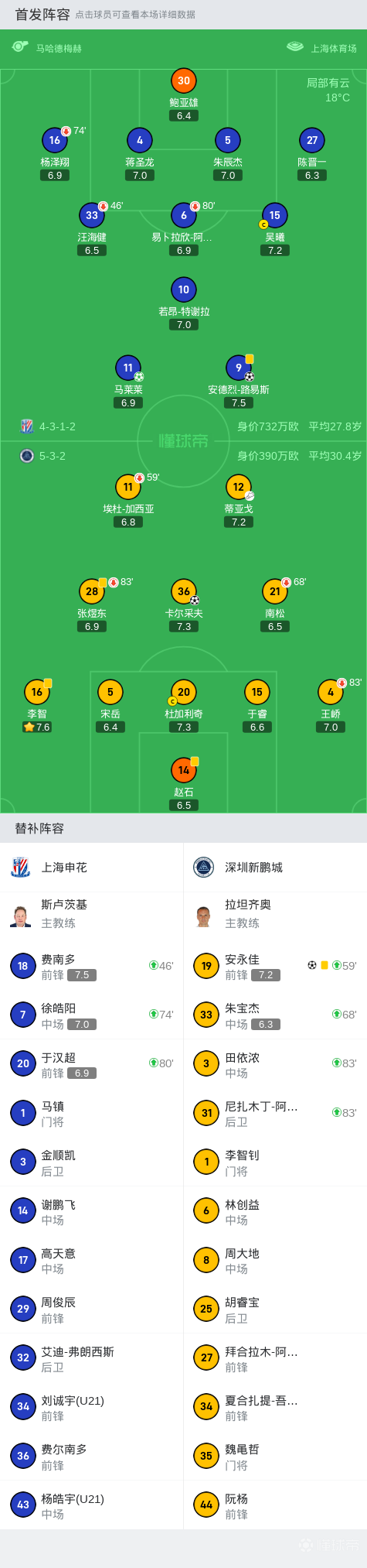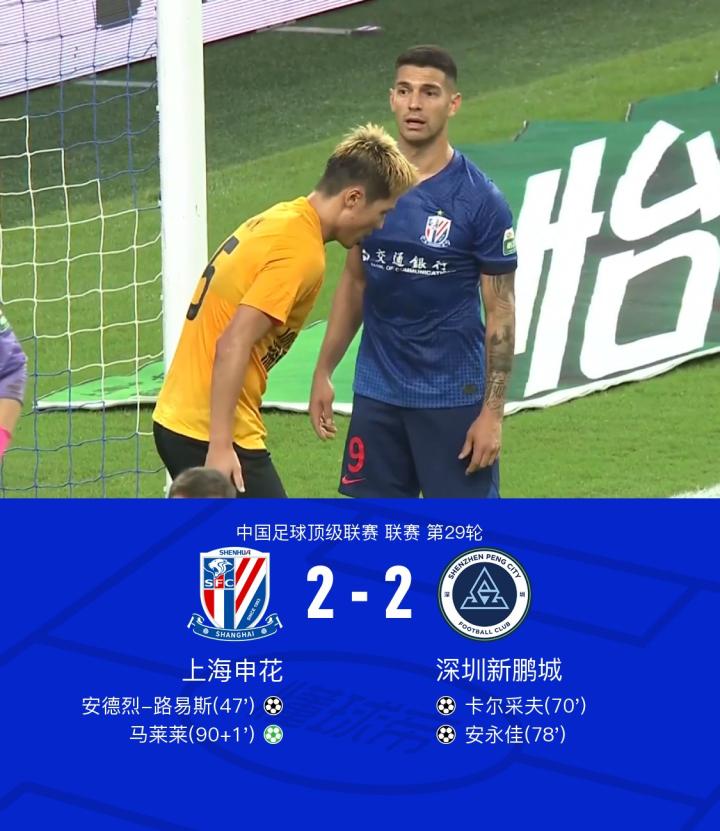 扫描下载懂球帝首页>动态> 申花2-2新鹏城落至第二,马莱莱绝平,路易斯、安永佳建功