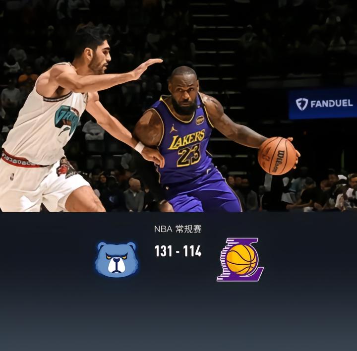 扫描下载懂球帝首页>动态> 詹姆斯空砍39分!湖人114-131灰熊,河村勇辉布朗尼上演对位