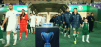 双方球员列队进场,比赛即将打响