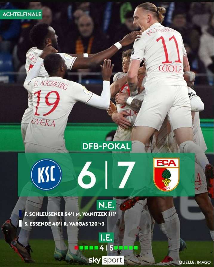 扫描下载懂球帝首页>动态> 德国杯:奥格斯堡点球总分7-6卡尔斯鲁厄晋级,鲍尔制胜