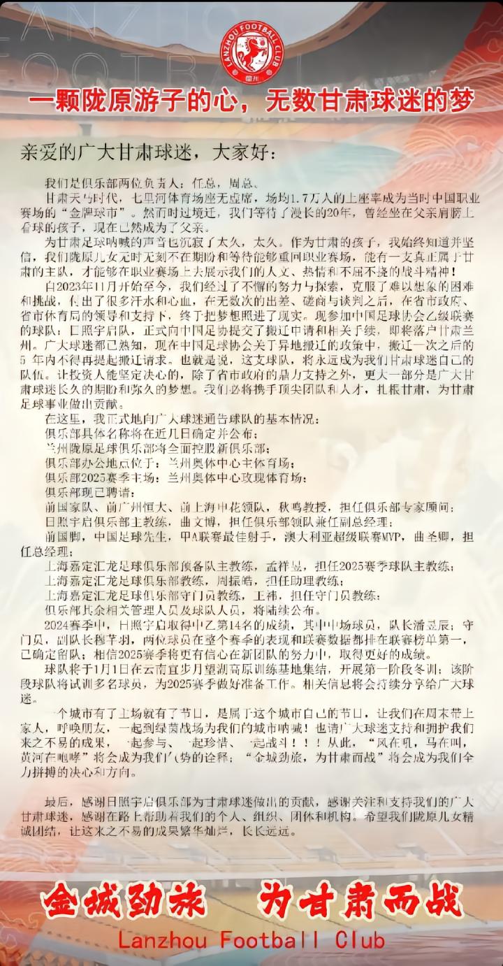 扫描下载懂球帝首页>动态> 网传日照宇启已搬迁至兰州,嘉定汇龙预备队主帅挂帅