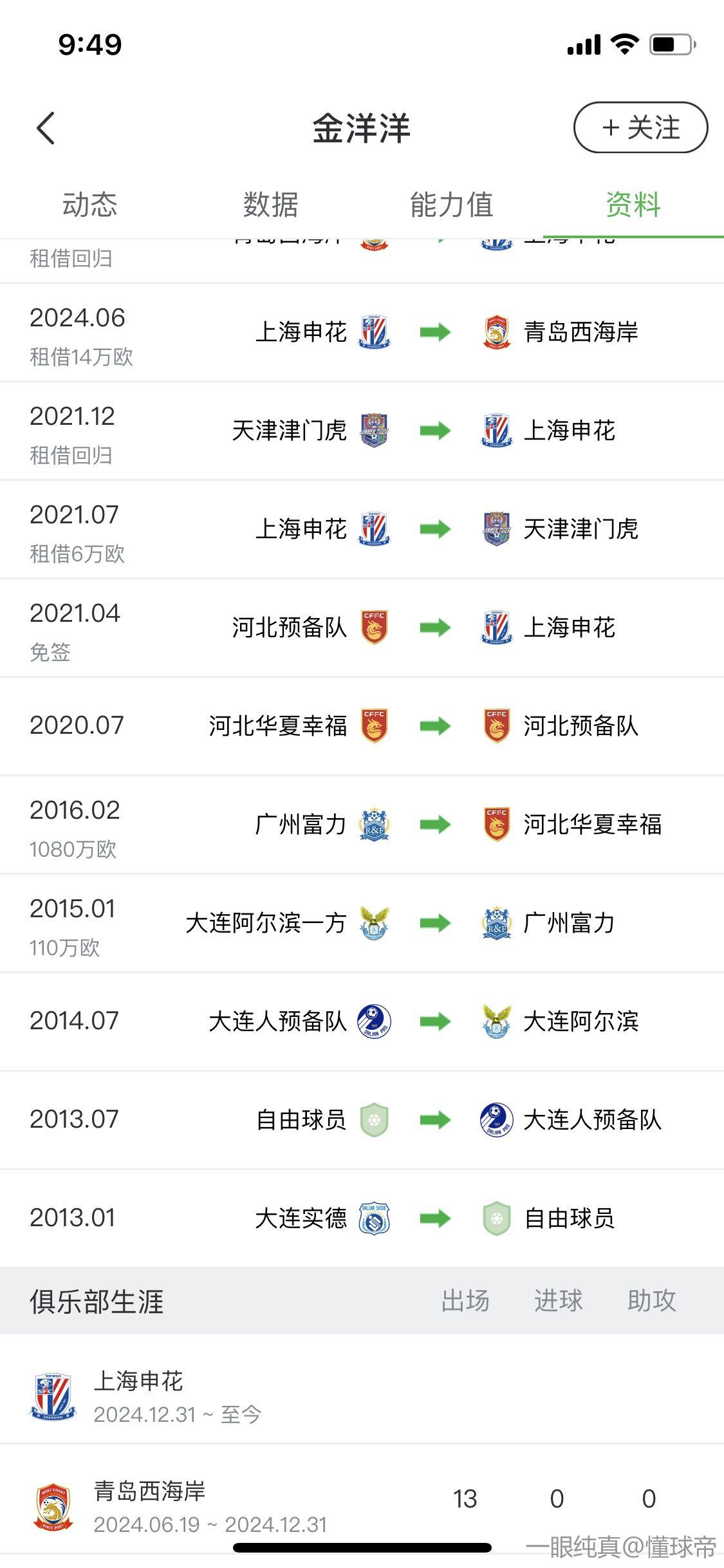徐友刚太可惜了,在黄海基本上是练出来了,申花收回去第一个赛季也不错,结果被招进了军训队,训傻了……直接一落千丈。