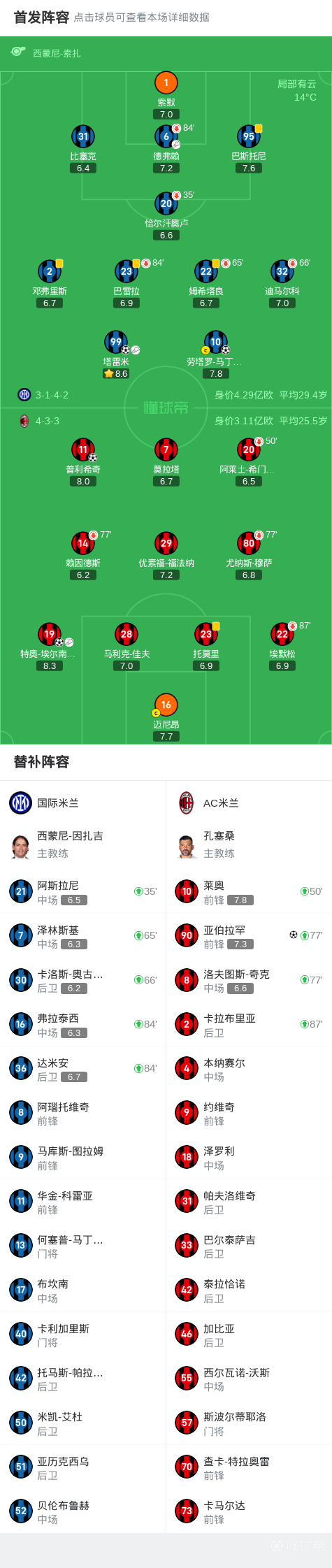 米兰换帅后效果还挺明显的,很少看到米兰这么会用身体,这么有侵略性,孔塞桑还是有点能力的,这点在以前票里带队时可是看不到的,最后再夸一下米兰的莱奥,满满的天赋,像是看到米兰夺冠那个赛季冲刺阶段的莱奥!