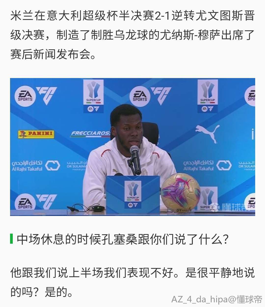 米兰在利雅得的状况不太好,这一点很明显。你只要看看孔塞桑上周四在首次正式的超级杯活动中的眼神就知道了……不止一名球员发烧,马泰奥-加比亚在决赛前被迫缺席训练。米兰没有过多渲染,他们淡化处理了这件事,但最终大家都明白了:有很多人生病了,尤其是亚伯拉罕和帕夫洛维奇。还有这样一个背景故事:球队带到利雅得的药几乎用完了。显然在当地再买新药也不是什么问题,但这个细节表明有多少人(球队和代表团成员)生病了,以及米兰是如何踢完这两场比赛的。
