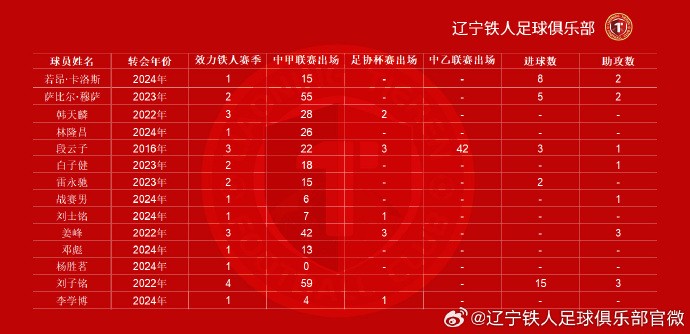 扫描下载懂球帝首页>动态> 辽宁铁人官方:若昂-卡洛斯、段云子、邓彪等14名球员离队