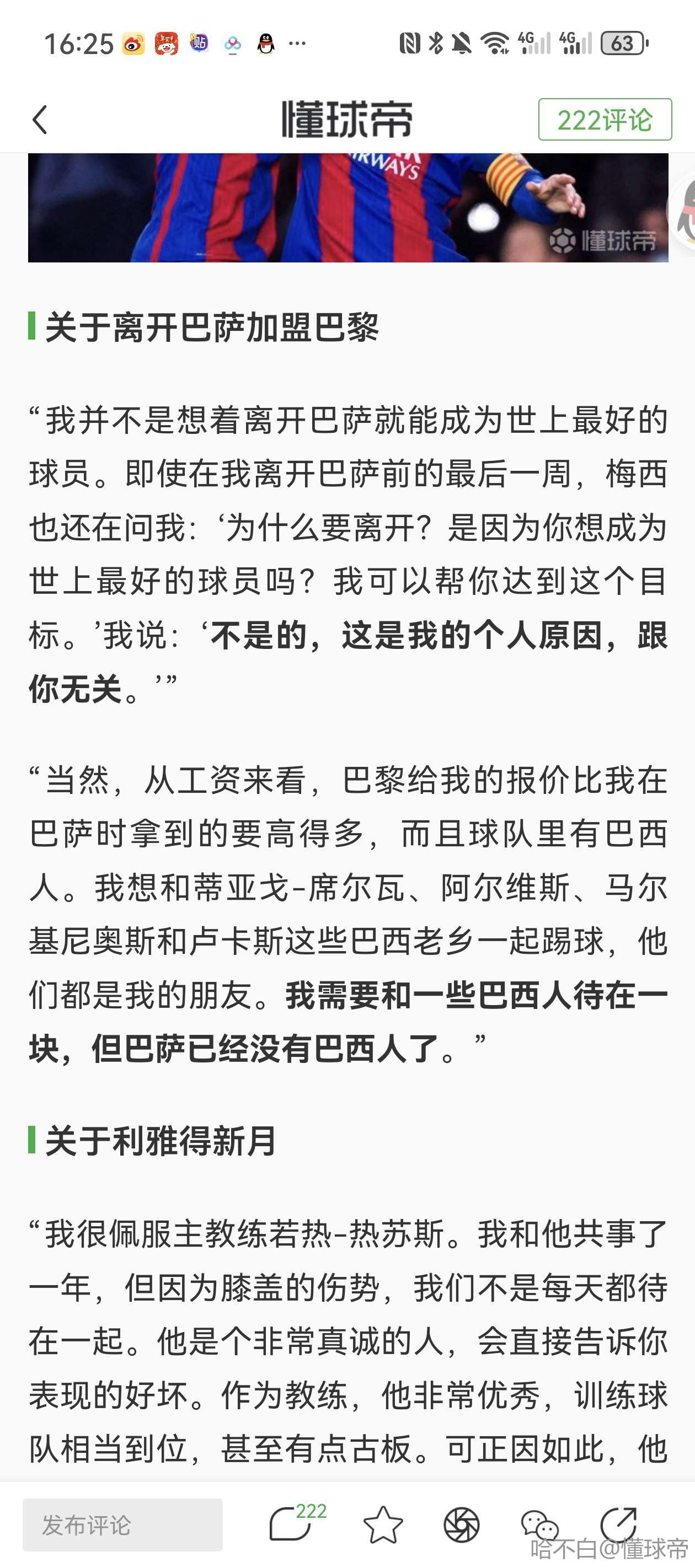 当时某些群体不是说:内马尔离开是因为逆转巴黎报纸头条登的都是梅西才让他走吗
