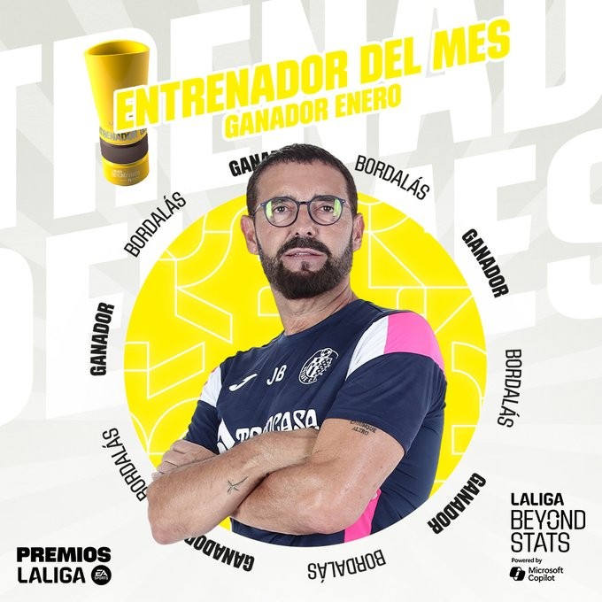博尔达拉斯被评为西甲的1月最佳教练,这一奖项由西甲和微软共同颁发。本月,赫塔费在三场比赛中取得了两场客场胜利和一场平局,获得了七分。