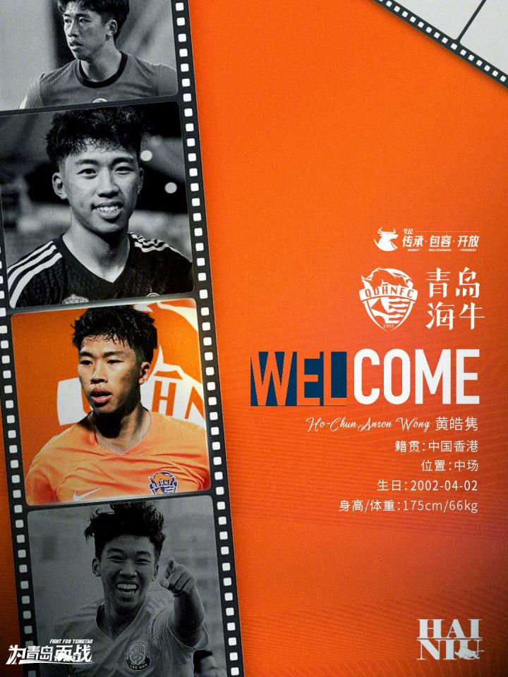 北京时间1月31日,青岛海牛官方消息,22岁中国香港代表队中场黄皓隽加盟球队,双方签约2年。