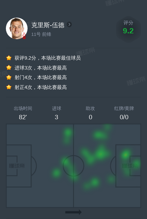 扫描下载懂球帝首页>动态> 克里斯-伍德vs布莱顿全场数据:3进球,1次关键传球
