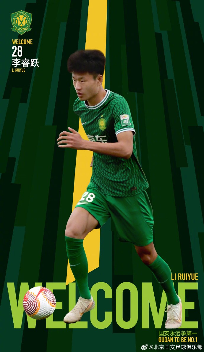 李睿跃正式加盟北京国安足球俱乐部,他将身披28号球衣,代表北京国安出战本赛季中超联赛、亚冠联赛、足协杯等各项赛事。 李睿跃出生于2006年5月15日,身高192cm,体重79kg,司职中场。