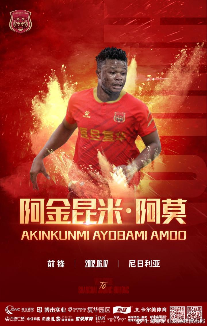 北京时间2月2日,上海嘉定汇龙官方宣布,22岁尼日利亚边锋阿莫加盟俱乐部。