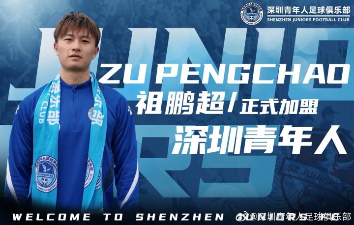 深圳青年人足球俱乐部发布公告,宣布前湖南湘涛球员祖鹏超加盟。