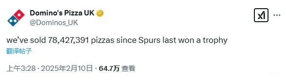 扫描下载懂球帝首页>动态> 整活,达美乐披萨:自热刺上次夺冠来我们已卖78427391个披萨