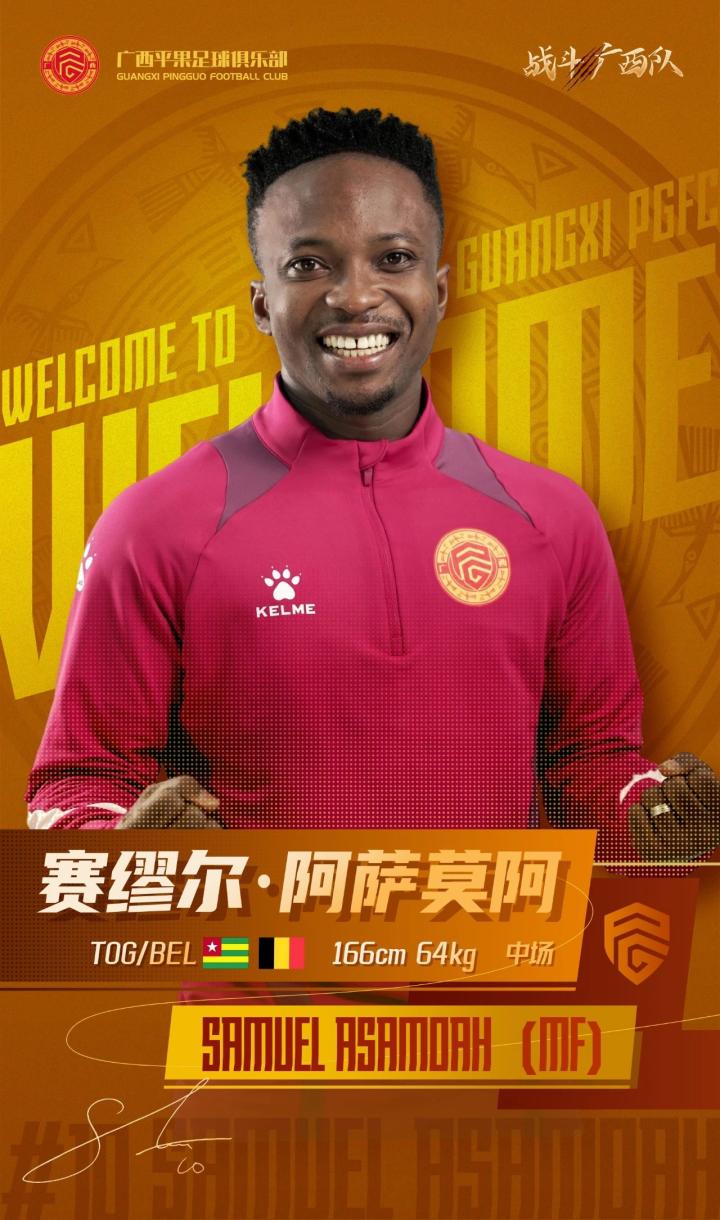 新赛季,新形象,新征程!欢迎塞缪尔-阿萨莫阿加盟广西平果足球俱乐部,2025赛季,愿我们一起携手并进,发挥出色的表现,为广西而战!
