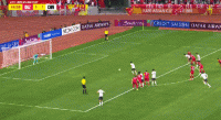 第90+2分钟,朱鹏宇禁区头球破门,中国队5-2大比分领先