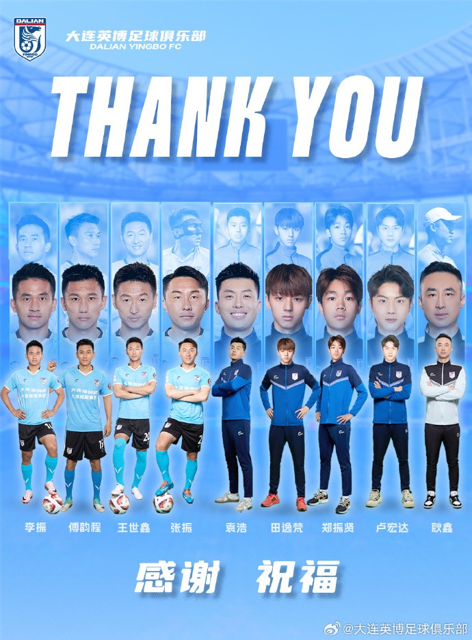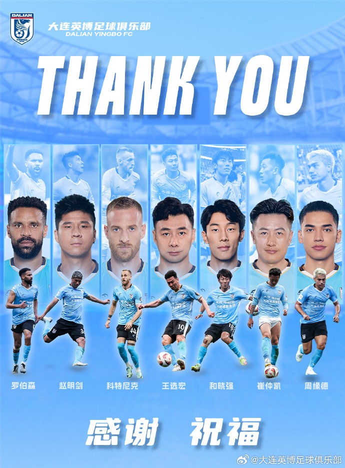 扫描下载懂球帝首页>动态> 大连英博官方:罗伯森、科特尼克、王选宏、赵明剑等16人离队