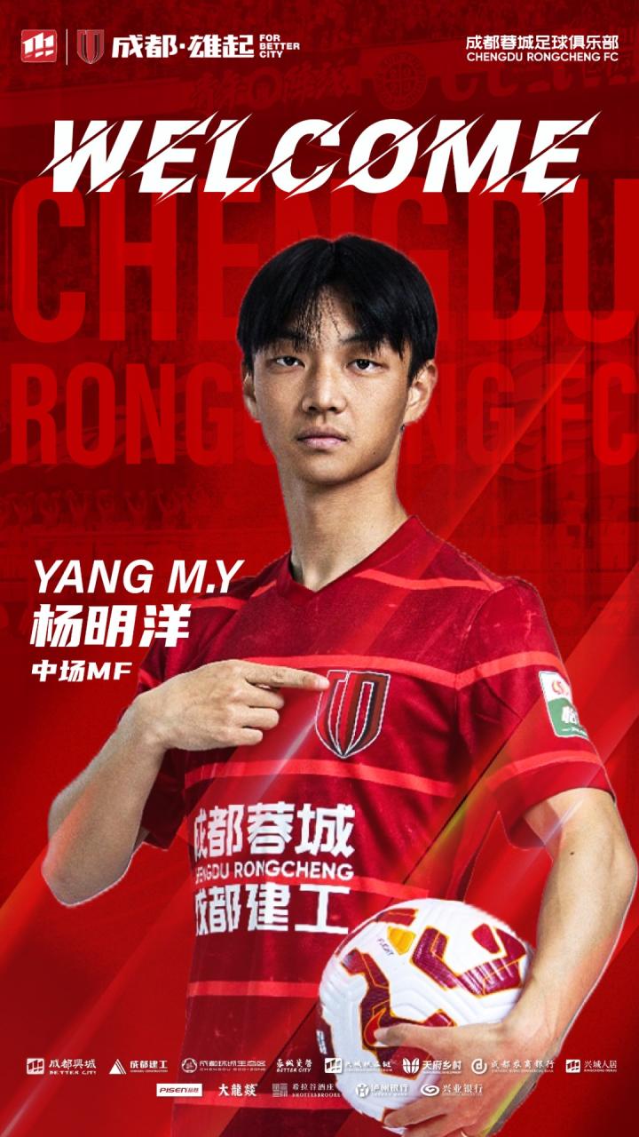 欢迎杨明洋来到成都,加入成都蓉城的大家庭。你的到来,将帮助蓉城在新赛季中取得更优异的成绩!