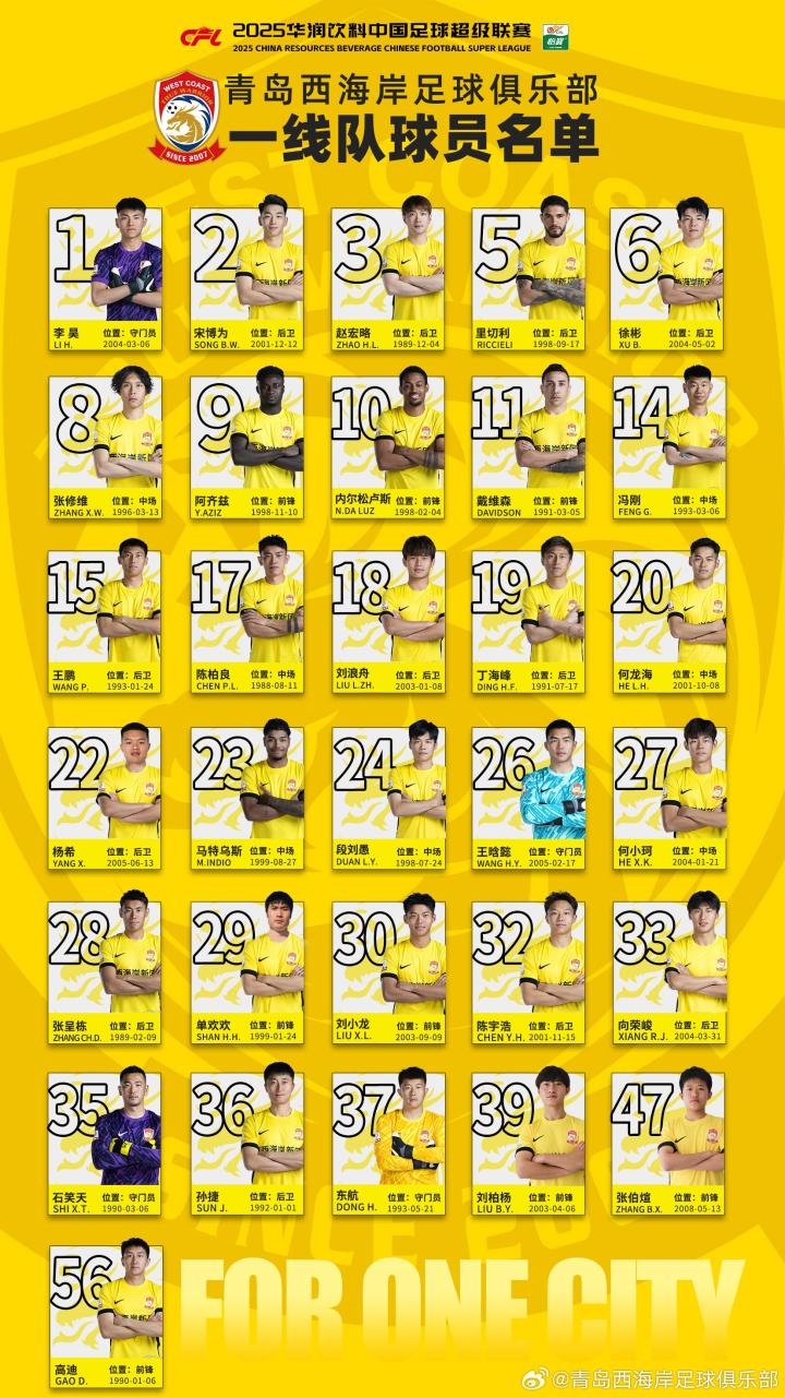 扫描下载懂球帝首页>动态> 西海岸一线队名单:李昊身披1号球衣,阿齐兹9号,戴维森11号