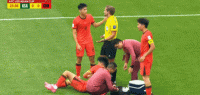第23分钟,彭啸出现受伤状况,接受队医治疗