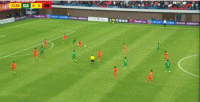 第36分钟,U20国青定位球配合,门前倒地打门被挡