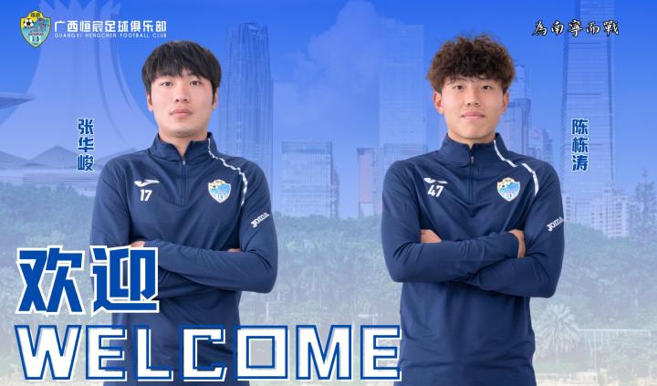广西恒宸足球俱乐部欢迎张华峻、陈栋涛的加盟,让我们一起为新赛季共同努力,为球迷们奉献更多精彩比赛!