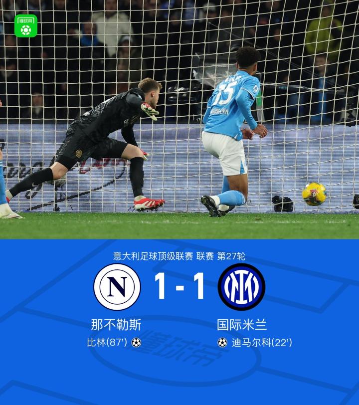 扫描下载懂球帝首页>动态> 剑南春|国米客场1-1那不勒斯 ,迪马尔科破门+伤退比林绝平