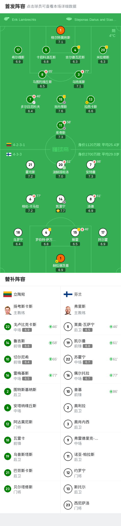 第69分钟,立陶宛球员戈卢比克卡斯助攻吉内蒂斯打入一球。