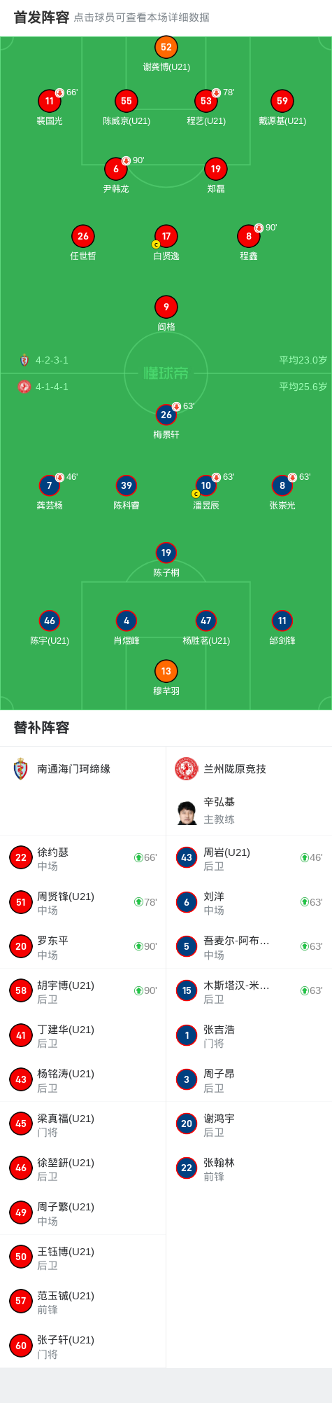04-05 17:23上海海港B队 vs 南通海门珂缔缘 比赛动态