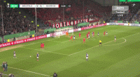 阵阵高呼,属于比勒菲尔德的奇迹!!德丙球队杀入德国杯决赛,比上个赛季萨尔布吕肯连杀三支德甲球队更进一步!他们迈过了汉诺威96,趟过了柏林联合,淘汰了弗赖堡,击败了不莱梅,今天他们又半场完成逆转拿下卫冕双冠王!