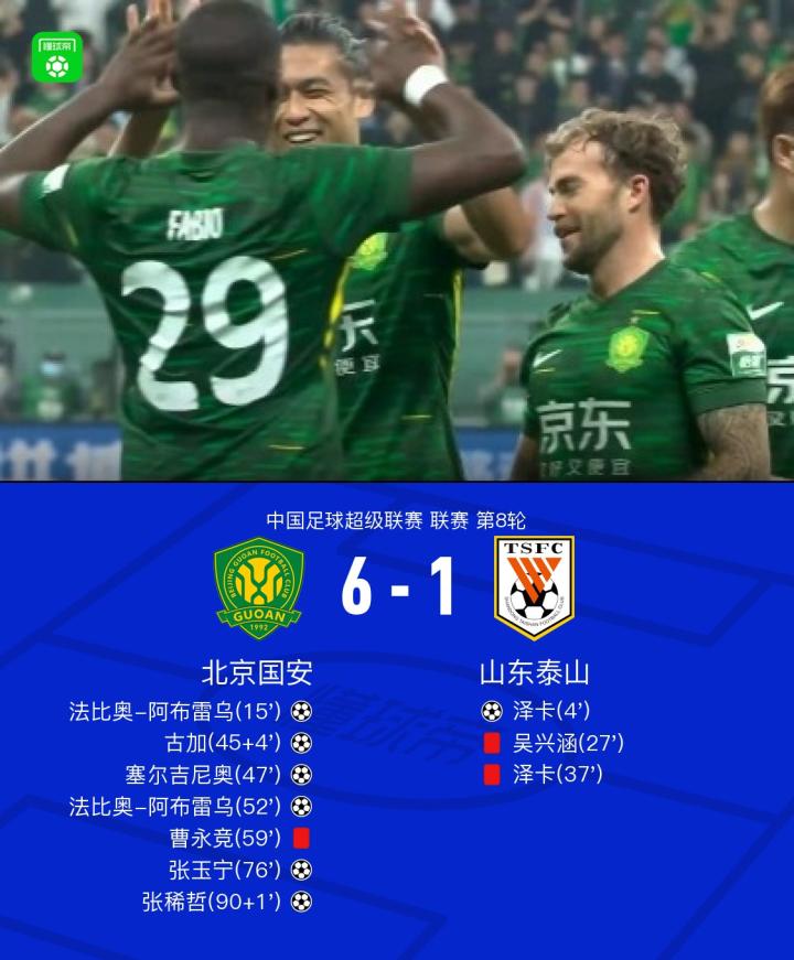 扫描下载懂球帝首页>动态> 十人国安6-1大胜九人山东,泽卡、吴兴涵、曹永竞染红