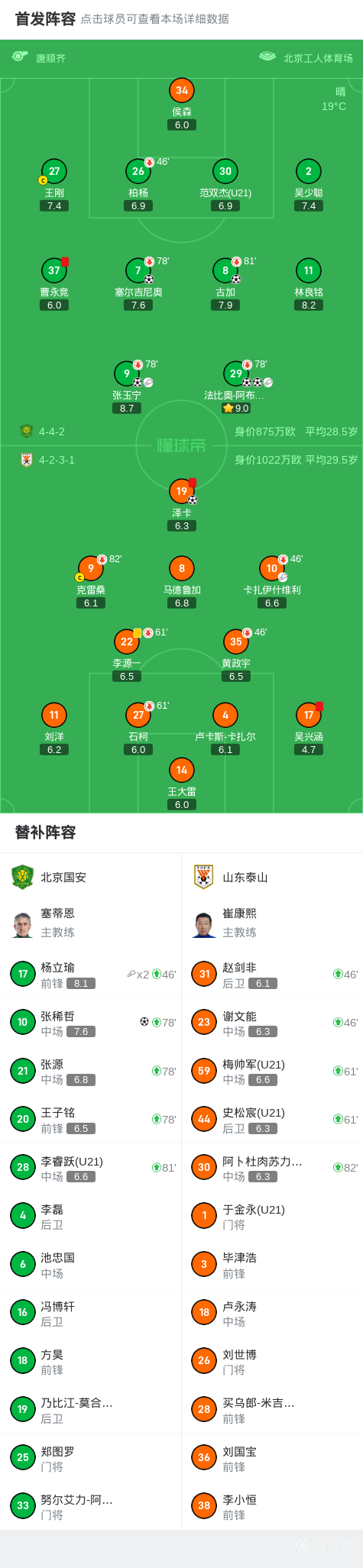 战报:唐顺齐带帽,北京国安主场战胜山东鲁能