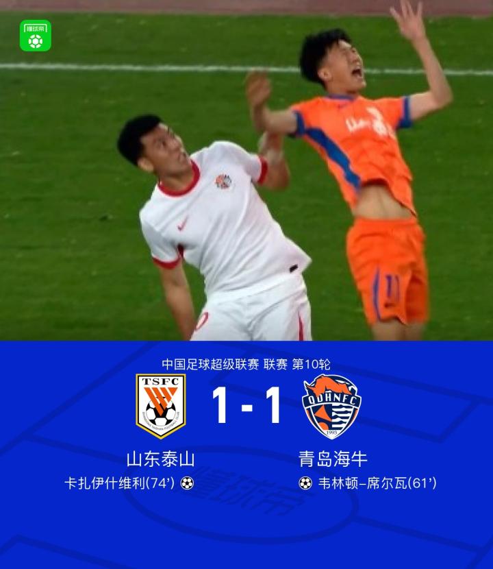 第十轮,主场打青岛海牛,海牛稳扎防守,泰山依然进攻便秘,得势不得分,海牛凭借反击打进一球,然后被泰山抓住后防混乱打进一球,1-1;