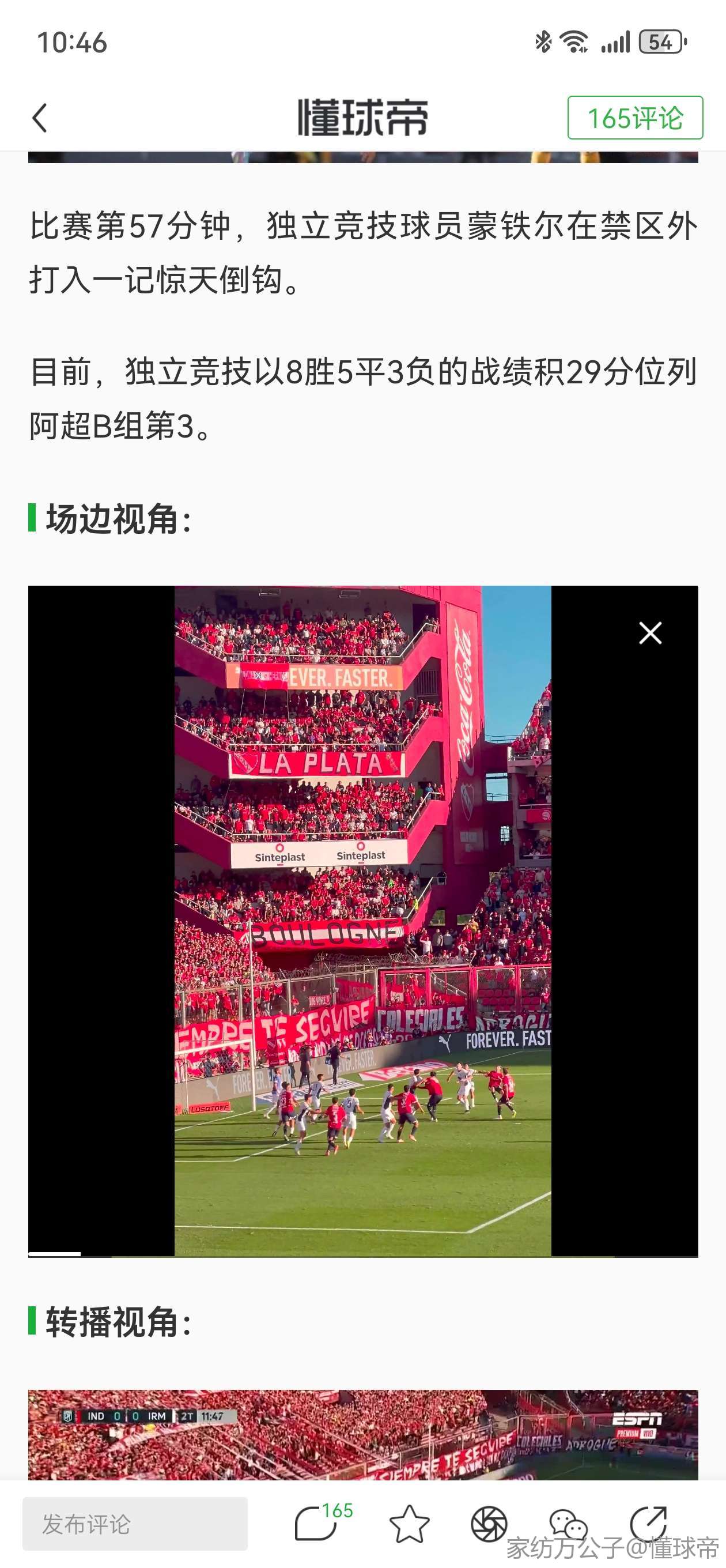 比赛第57分钟,独立竞技球员蒙铁尔在禁区外打入一记惊天倒钩。