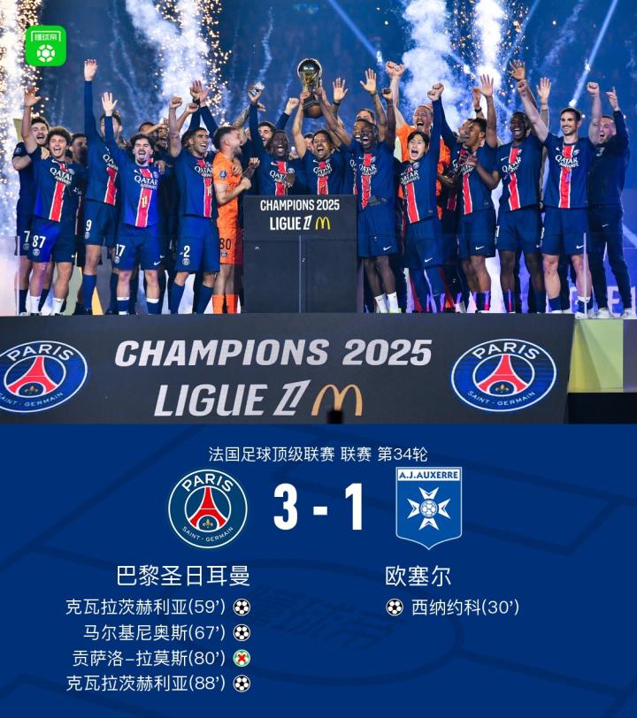 完美收官,创造了三分制18队新的积分记录!虽然过程有一些不完美,不管是这场比赛还是这个赛季,但结局是好的。回首这赛季,打破了无数的记录,只希望欧冠的结局能让巴黎的历史真正翻开新的篇章!