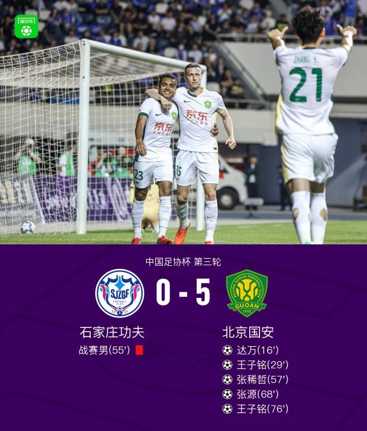 扫描下载懂球帝首页>动态> 足协杯:国安5-0十人石家庄功夫晋级,王子铭双响,张稀哲建功