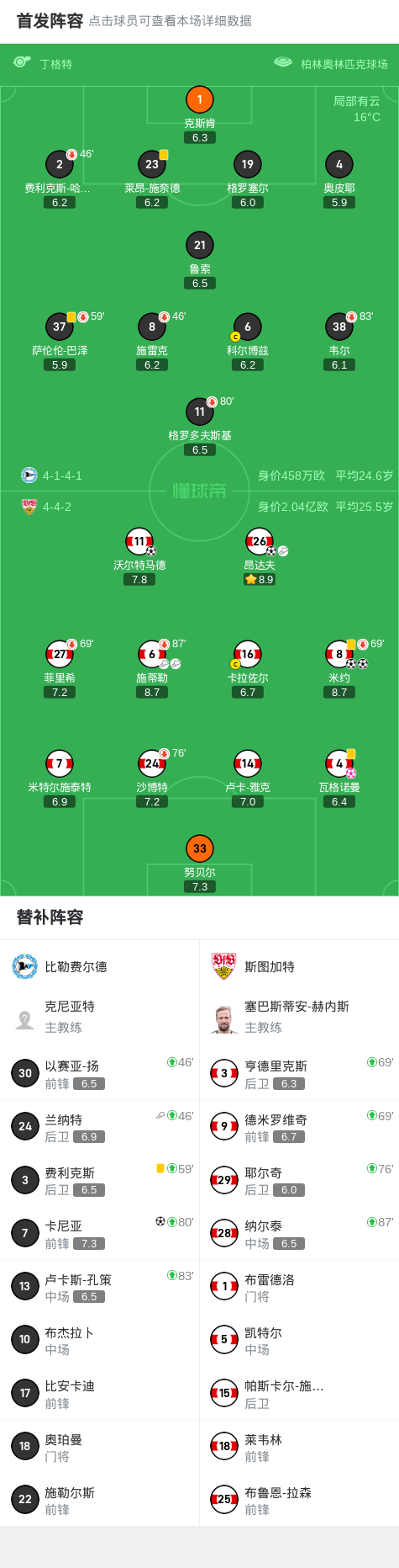 虽然没能创造奇迹,但比勒能连斩德甲四队并且重回德乙已经足够令人尊重,同时也恭喜斯图,希望连续第二年打欧战好运