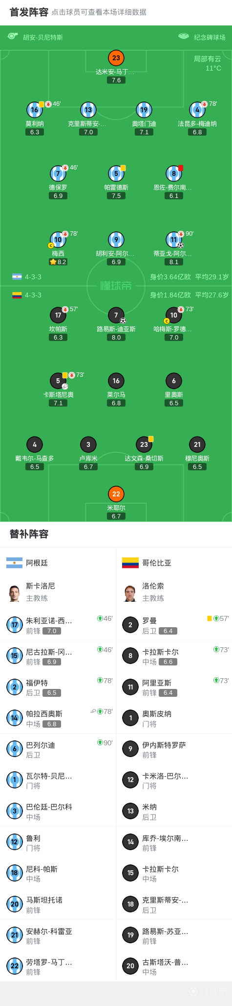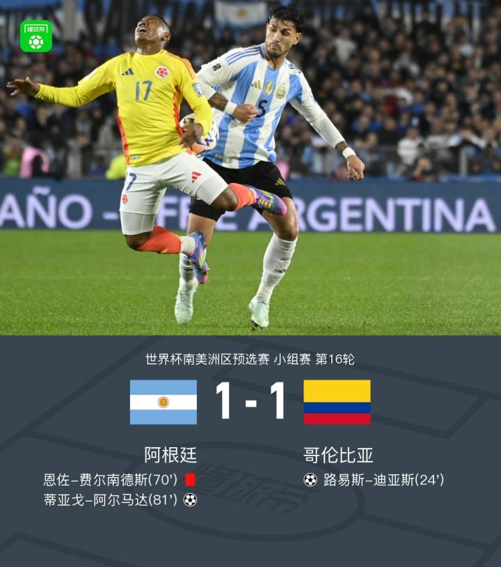 扫描下载懂球帝首页>动态> 阿根廷1-1哥伦比亚,迪亚斯一条龙,恩佐直红,阿尔马达救主