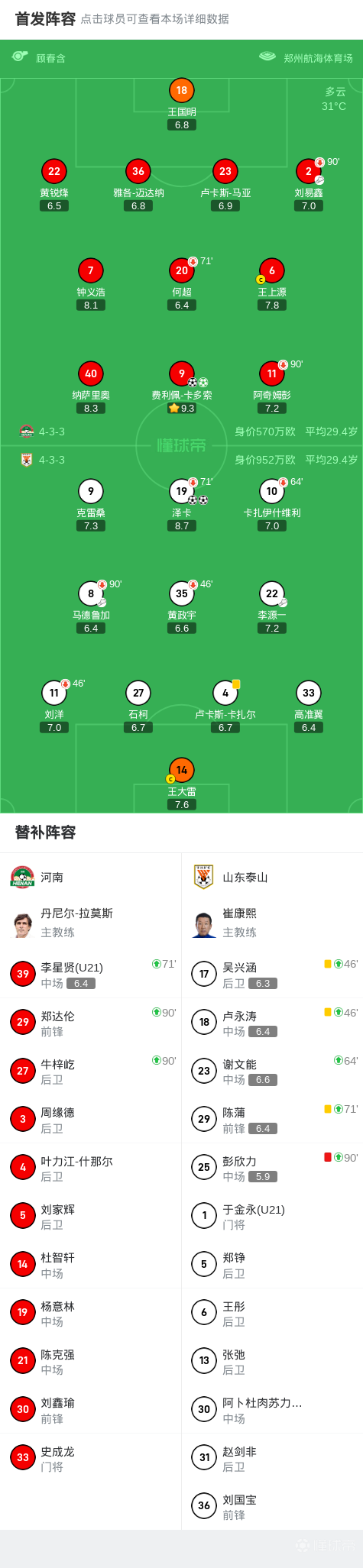 扫描下载懂球帝首页>动态> 河南2-2山东,泽卡梅开二度,卡多索双响,彭欣力直红